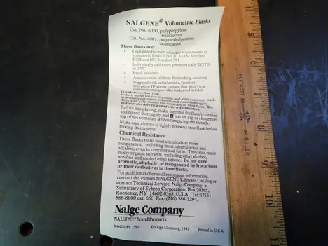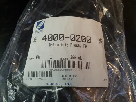 Thermo Scientific Nalgene Polypopylene Volimetric Flask +Lid 4000-0200 200mL NEW