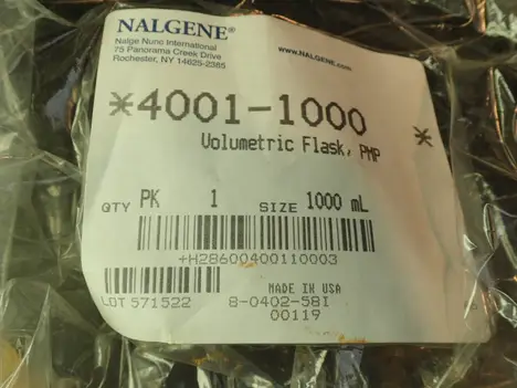 Thermo Scientific Nalgene Polypopylene Volimetric Flask+Lid 4001-1000 1000mL NEW