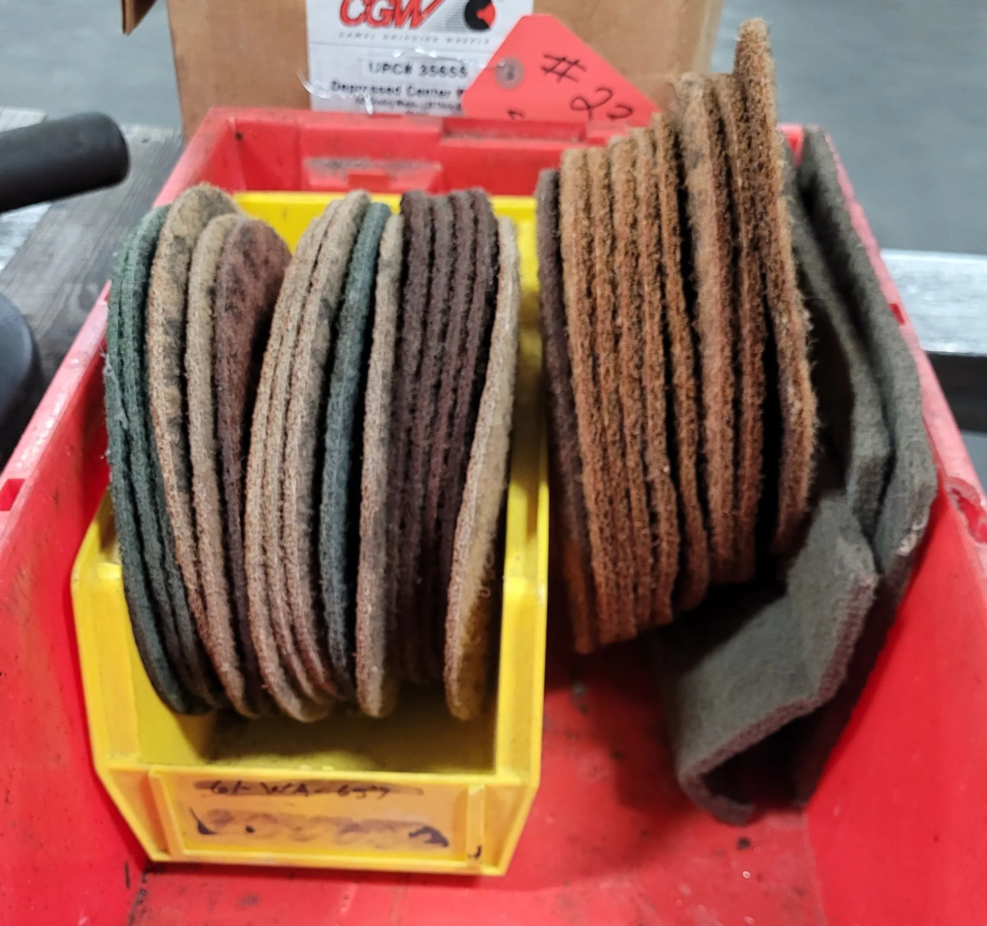 THE TOP CAT 54 AVK VERTICAL AIR GRINDER IS A PNEUMATIC TOOL DESIGNED FOR HIGH-PERFORMANCE INDUSTRIAL APPLICATIONS. THIS UNIT OPERATES AT A MAXIMUM AIR PRESSURE OF 90 PSI AND ACHIEVES A MAXIMUM ROTATIONAL SPEED OF 6000 RPM. IT FEATURES A 9-INCH TYPE 27 GUARD TO ACCOMMODATE VARIOUS GRINDING AND CUTTING ATTACHMENTS. THE ASSEMBLY INCLUDES FIVE DEWALT DW8759 TYPE 27 A24R GRINDING WHEELS MEASURING 9 X 3/32 X 5/8-11, FIVE CAMEL GRINDING WHEELS A24RBF TYPE 27 WITH A 5/8-11 HUB AND 7/8 ARBOR MEASURING 9 X 1/4 INCH, AND A 25-FOOT AIR HOSE. THE SYSTEM IS EQUIPPED WITH AN ASSORTMENT OF GRINDING, BUFFING, AND CUT-OFF ATTACHMENTS TO FACILITATE VERSATILE MATERIAL PROCESSING.
