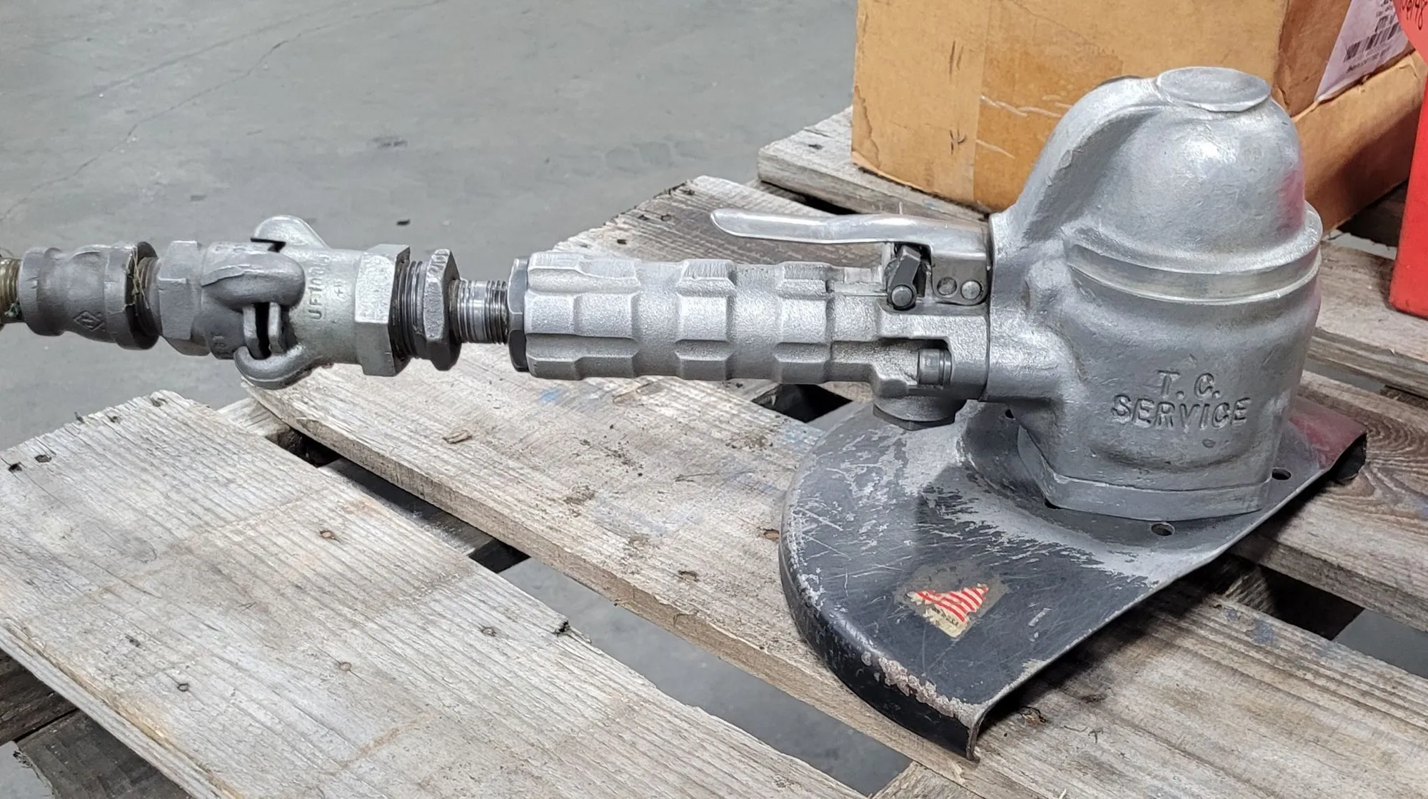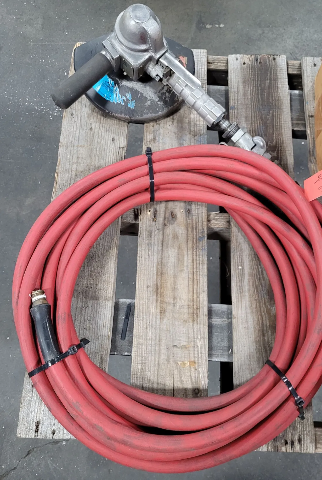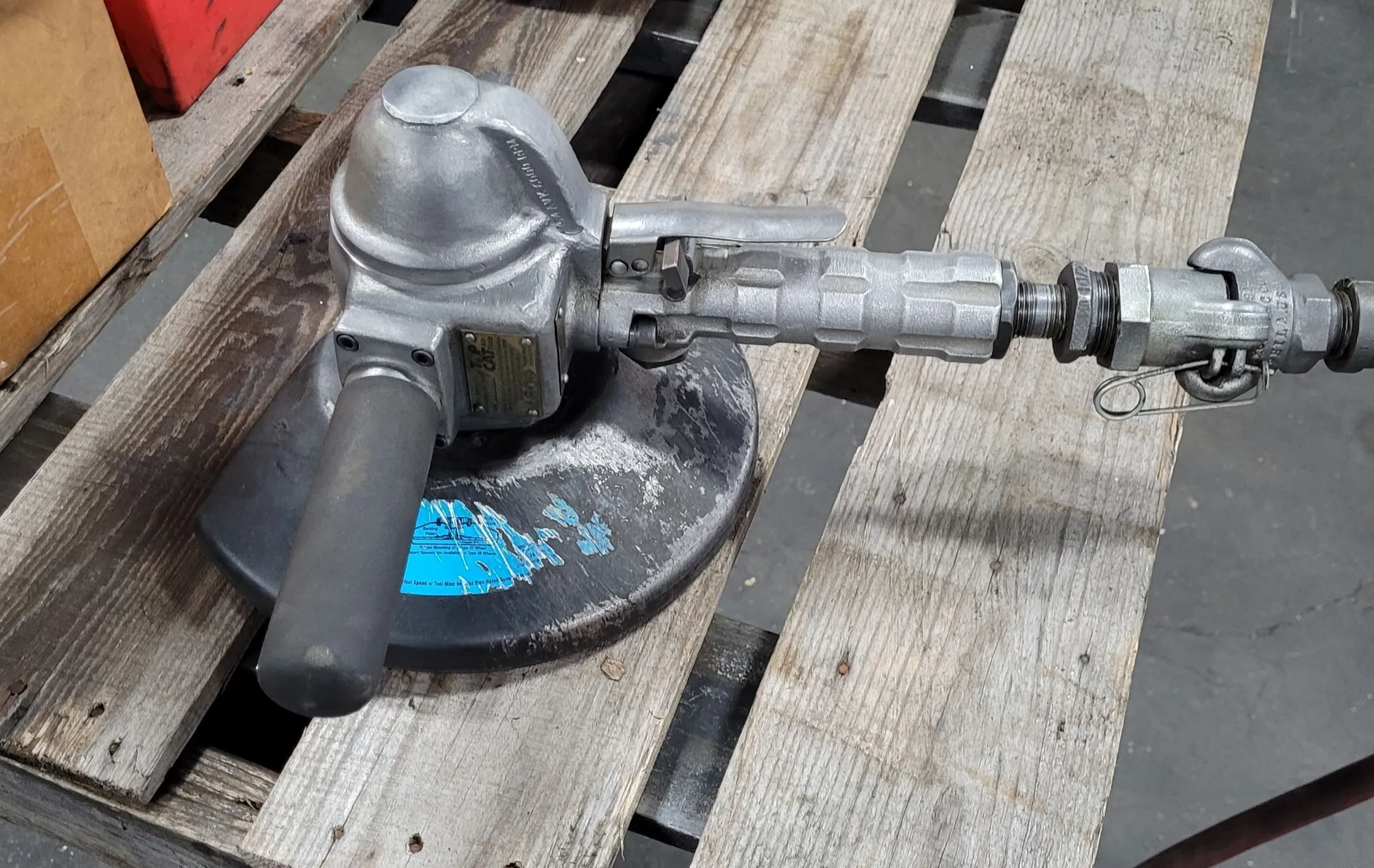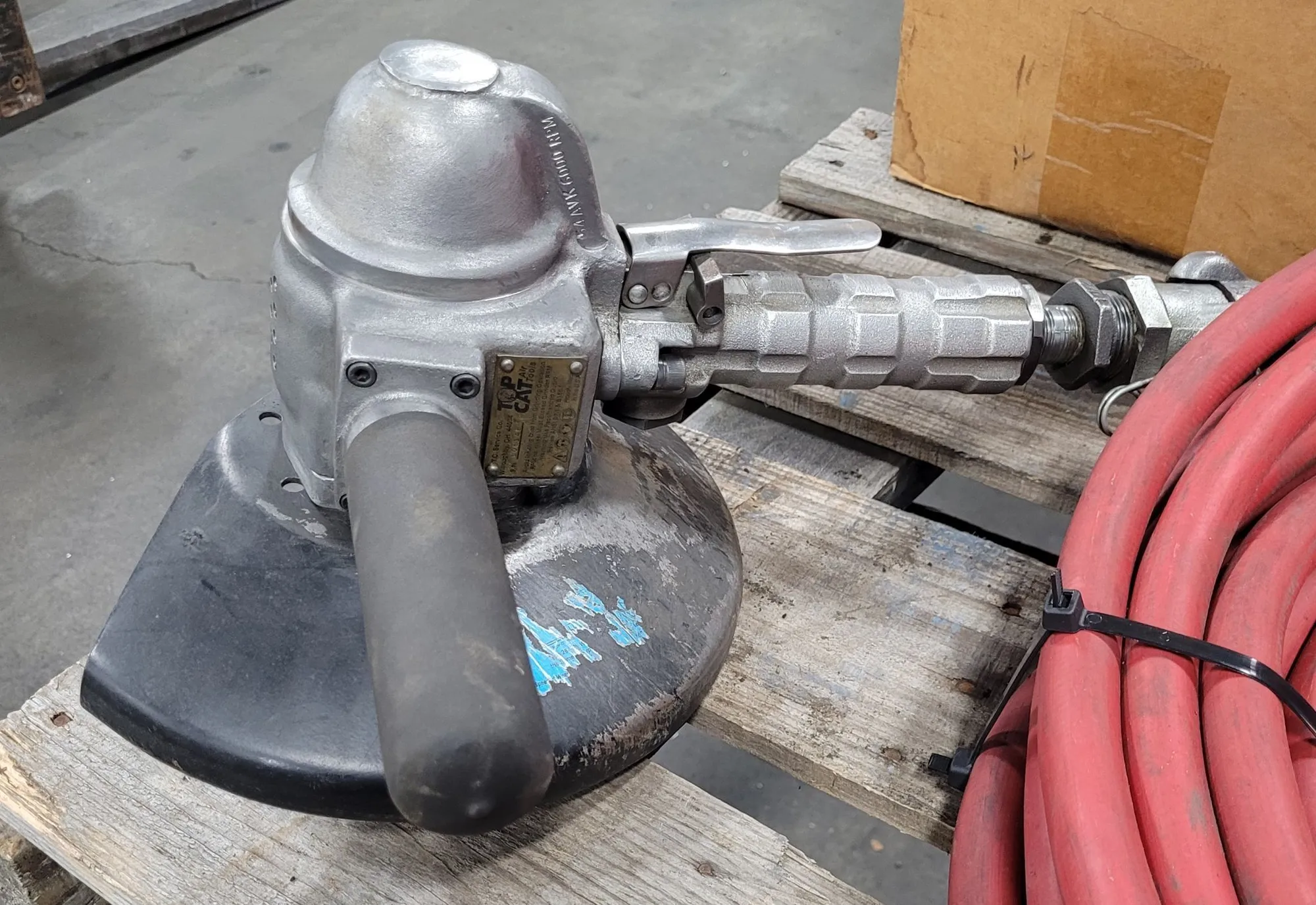 TOP CAT 54 AVK VERTICAL AIR GRINDER, 6000 RPM, 90 PSI, 9" GUARD, HOSE & GRINDING WHEELS