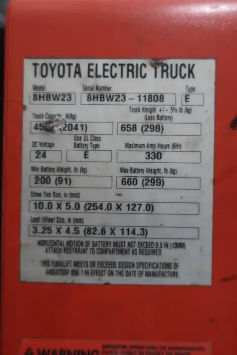 TOYOTA 8HBW23 ELECTRIC PALLET JACK, 24V DC, TYPE E BATTERY, 7159 HOURS, WORKING CONDITION