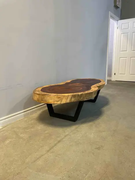 TRUNK COFFEE TABLE 60" X 32" X 17". FINISHED LIVE EDGE TOP