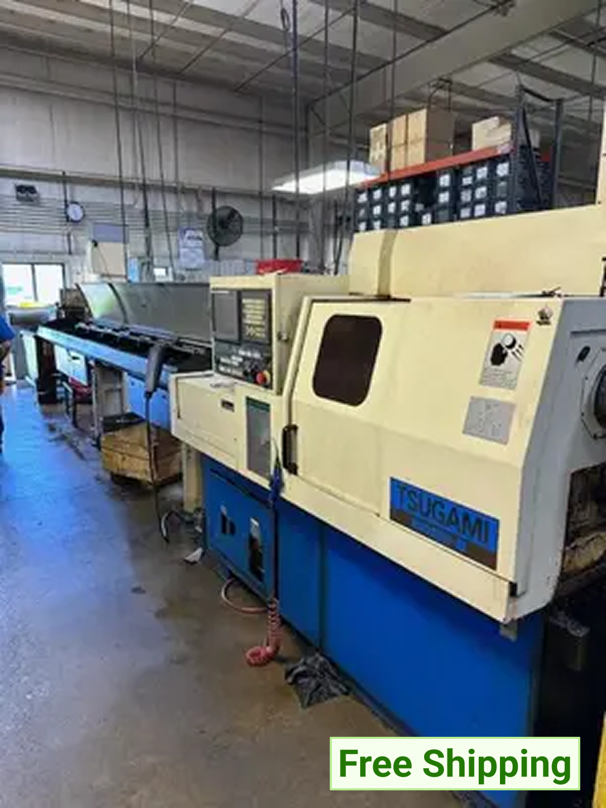 THE TSUGAMI BS26-III CNC SWISS AUTOMATIC SCREW MACHINE IS ENGINEERED FOR HIGH-PRECISION MACHINING. THIS 7-AXIS MACHINE FEATURES A 1-INCH CAPACITY AND IS EQUIPPED WITH THE FANUC 18I-TB CONTROL SYSTEM. BOTH THE MAIN AND SUB-SPINDLES INCLUDE C-AXIS INDEXING CAPABILITIES.