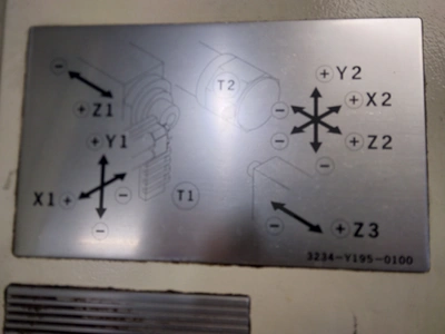 THE MACHINE IS EQUIPPED WITH AN 8-STATION TURRET (3-AXIS) AND AN INDEPENDENT GANG TOOL SLIDE, PERMITTING SIMULTANEOUS FRONT AND BACK WORKING. STANDARD AXES INCLUDE X1, Z1, C1, Y1, X2, Z2, Y2, AND AN OPTIONAL Z3 AXIS, FACILITATING VERSATILITY IN MACHINING. THE LIVE TOOL MOTOR OFFERS 15.0 HP WITH A SPEED OF 5000 RPM. DIMENSIONS ARE 133" X 83" X 101", WITH A TOTAL WEIGHT OF 12,100 LBS. THIS MODEL IS A SWISS-TYPE MACHINE DESIGNED FOR PRECISION AND FLEXIBILITY.