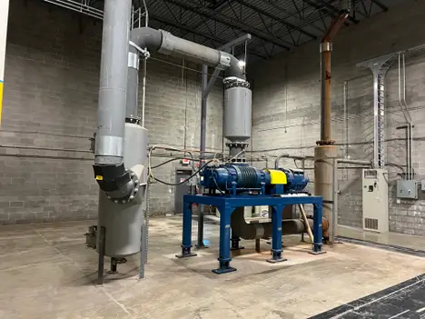 Tuthill 1224-86L2P-6205 Blower, 6036 CFM, 507mBar to 15PSI, 200Hp 460V AC Motor, Progentex Muffler