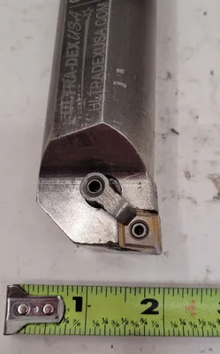 THE ULTRA DEX S24U MCLNR4 INDEXABLE BORING BAR IS DESIGNED FOR PRECISION BORING APPLICATIONS. IT FEATURES AN OVERALL LENGTH OF 12 INCHES AND A SHANK DIAMETER OF 1.5 INCHES, SUITABLE FOR A MINIMUM BORE OF 1.73 INCHES. THE TOOL IS CONFIGURED FOR RIGHT-HAND USE AND INCORPORATES A -5° LEAD ANGLE FOR OPTIMAL PERFORMANCE. IT UTILIZES A FLATTED SHANK TYPE AND DOES NOT INCLUDE A COOLANT HOLE. THE BORING BAR IS COMPATIBLE WITH CNMG 432 INSERTS AND EMPLOYS A CLAMP AND LOCK PIN STYLE FOR SECURE INSERT RETENTION. THE INCLUDED COMPONENTS ARE A CL-20 CLAMP, AN XNS-47 CLAMP SCREW, AND AN NL-46 LOCK PIN, ENSURING RELIABLE AND STABLE OPERATION DURING USE.