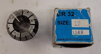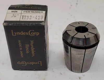 THIS UNBRANDED 5-PIECE COLLET SET IS DESIGNED TO MEET VARIOUS TOOLING AND ACCESSORY REQUIREMENTS. THE SET INCLUDES THE FOLLOWING COMPONENTS: A CENTAUR 320-318 RDT 32.318 COLLET, A CENTAUR COLLET WITH DIMENSIONS OF .381X.286, A LYNDEX ER32 COLLET WITH A 9/16 SIZE, AN SYIC ER32 COLLET IN SIZE 17, AND AN ERI AMERICA 100TG-0531 COLLET WITH A SIZE 17/32. THESE COLLETS ARE COMPATIBLE WITH ER32 AND TG100 SYSTEMS, PROVIDING VERSATILITY FOR DIFFERENT MACHINING APPLICATIONS. THE COLLETS ARE SUITABLE FOR SECURING TOOLS AND WORKPIECES IN MILLING, DRILLING, AND OTHER PRECISION MACHINING OPERATIONS, ENSURING RELIABLE PERFORMANCE AND ACCURACY.