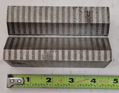 THE MAGNETIC V-BLOCK SET CONSISTS OF FIVE UNITS DESIGNED FOR PRECISION TASKS IN MACHINING AND WORKSHOP ENVIRONMENTS. EACH V-BLOCK MEASURES 1-7/8 INCHES IN HEIGHT, 4-3/8 INCHES IN LENGTH, AND 2-3/8 INCHES IN WIDTH. THESE BLOCKS ARE EQUIPPED WITH A MAGNETIC FUNCTION, MAKING THEM SUITABLE FOR SECURELY HOLDING CYLINDRICAL AND IRREGULARLY SHAPED WORKPIECES DURING INSPECTION, MARKING, AND OTHER PRECISION OPERATIONS. THE V-BLOCK TYPE IS A CHUCK, WHICH IS COMMONLY USED TO STABILIZE AND POSITION WORKPIECES ACCURATELY. DESPITE BEING USED, THE MAGNETIC CAPABILITY OF THE BLOCKS REMAINS INTACT, ENSURING RELIABLE PERFORMANCE IN VARIOUS APPLICATIONS. THE SET IS UNBRANDED, OFFERING VERSATILITY AND COMPATIBILITY WITH A RANGE OF TOOLING ACCESSORIES.