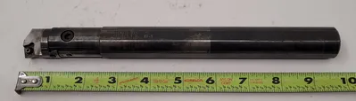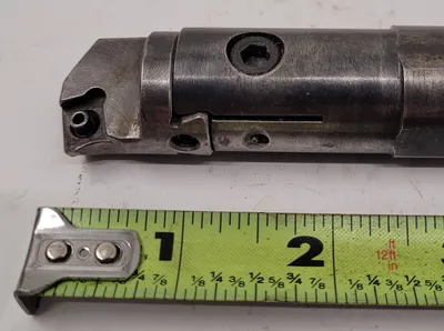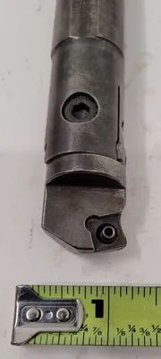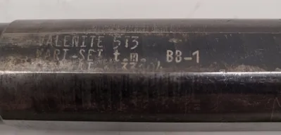 THE VALENITE 5T3 BORING BAR, MODEL MART-SET T.M. BB-1, IS A PRECISION TOOLING INSTRUMENT DESIGNED FOR HIGH-PERFORMANCE MACHINING APPLICATIONS. IT FEATURES A TOTAL LENGTH OF 10 INCHES AND A SHANK DIAMETER OF 1 INCH, MAKING IT SUITABLE FOR A VARIETY OF BORING OPERATIONS. THIS INDEXABLE INSERT BORING BAR IS ENGINEERED TO ACCOMMODATE REPLACEABLE CUTTING INSERTS, ENHANCING ITS VERSATILITY AND EFFICIENCY IN MATERIAL REMOVAL PROCESSES. THE ROBUST CONSTRUCTION AND PRECISE DIMENSIONS OF THE VALENITE 5T3 ENSURE STABILITY AND ACCURACY DURING OPERATION, MAKING IT AN ESSENTIAL COMPONENT FOR ACHIEVING HIGH-QUALITY FINISHES IN PRECISION MACHINING TASKS.