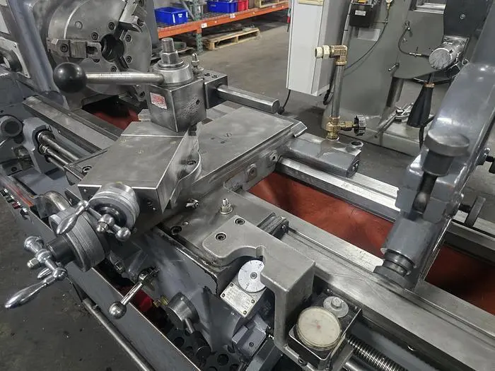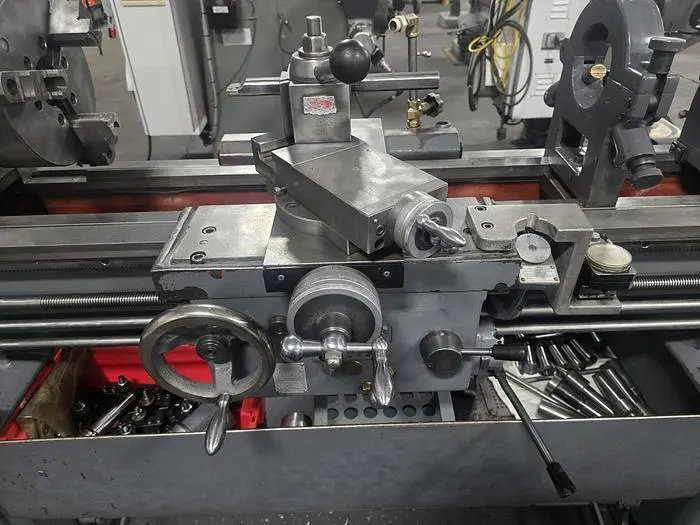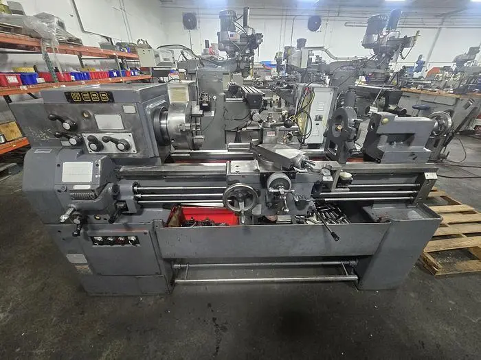 THIS WEBB 18" X 40" ENGINE LATHE FEATURES AN 18-INCH SWING OVER THE BED AND 40 INCHES BETWEEN CENTERS, ALONG WITH A 10-INCH SWING OVER THE CROSS SLIDE OR CARRIAGE. THE MACHINE IS BUILT WITH A SPINDLE BORE OF 2.125 INCHES AND OPERATES ACROSS AN RPM RANGE OF 50 TO 1,850. IT IS CURRENTLY WIRED FOR 440V 3 PHASE POWER. THE INCLUDED TOOLING AND ACCESSORIES CONSIST OF A 10-INCH 3-JAW BUCK CHUCK (MODEL 2103R), AN ALORIS CX3A QUICK CHANGE TOOL POST WITH 10 HOLDERS, A STEADYREST, AND A TAILSTOCK. THE LATHE'S DIMENSIONS ARE 90 INCHES LONG, 4 FEET WIDE, AND 67 INCHES HIGH, WITH A REPORTED WEIGHT OF 4,500 POUNDS.