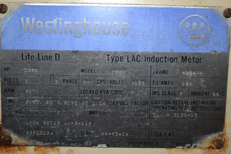WESTINGHOUSE HSW2 1250 HP 4160V HORIZONTAL MOTOR