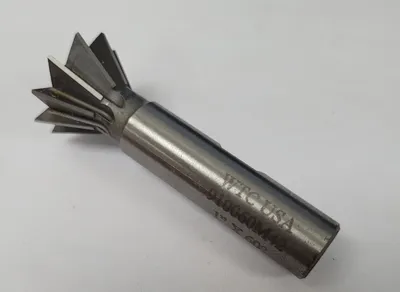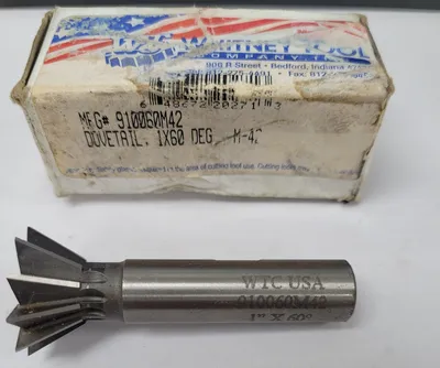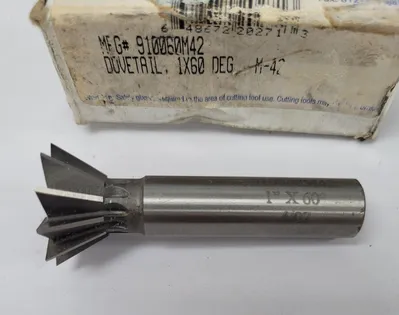 THE WHITNEY TOOL CO. DOVETAIL CUTTER, MODEL 910060M42, IS ENGINEERED FOR PRECISION TOOLING APPLICATIONS. IT FEATURES A 1-INCH CUTTER DIAMETER WITH A 60-DEGREE INCLUDED ANGLE, PROVIDING OPTIMAL PERFORMANCE FOR DOVETAIL CUTTING TASKS. THE CUTTER IS CONSTRUCTED FROM M42 MATERIAL, KNOWN FOR ITS HIGH-SPEED STEEL PROPERTIES, ENHANCING DURABILITY AND CUTTING EFFICIENCY. THE CUTTING WIDTH MEASURES 0.4375 INCHES (7/16 INCH), ALLOWING FOR PRECISE MATERIAL REMOVAL. THE TOOL IS EQUIPPED WITH 10 TEETH, ENSURING SMOOTH AND ACCURATE CUTS. THE SHANK DIAMETER IS 1/2 INCH, FACILITATING COMPATIBILITY WITH VARIOUS MACHINE SETUPS. THIS DOVETAIL CUTTER IS DESIGNED TO MEET THE DEMANDS OF HIGH-PRECISION MACHINING ENVIRONMENTS.