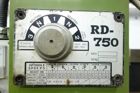 WILLIS TF750 RADIAL DRILL WITH BOX TABLE, JINSHIN 2 HP MOTOR, JINSHIN 1 HP MOTOR, CAME OUT OF A WORKING MACHINE SHOP, 50 IN W X 26 IN D X 87 IN H