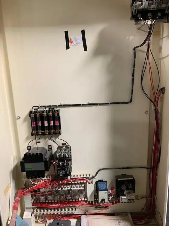 THIS IS A WISCONSIN OVEN MODEL SDB-436-12G BATCH TEMPER, GAS-FIRED FURNACE. IT IS RATED FOR A MAXIMUM TEMPERATURE OF 1250ºF AND FEATURES WORKABLE DIMENSIONS OF 24 INCHES WIDE BY 36 INCHES DEEP BY 18 INCHES HIGH. THE OVERALL UNIT DIMENSIONS ARE 71 INCHES WIDE BY 75 INCHES DEEP BY 104 INCHES HIGH. HEATING IS ACHIEVED VIA GAS-FIRED ECLIPSE BURNERS WITH A RATING OF 185,000 BTU. ELECTRICAL POWER REQUIREMENTS ARE 480 V, 3-PHASE, 60 CYCLE. INTERNAL CIRCULATION IS MANAGED BY A RECIRCULATING FAN RATED AT 28,000 CFM, DRIVEN BY A 3.0 HP MOTOR. THE CONTROL SYSTEM IS MOUNTED ON THE SIDE OF THE FURNACE AND INCLUDES A HONEYWELL DC2001 TEMPERATURE CONTROLLER, A HONEYWELL DC2005 HIGH LIMIT, A TYPE K THERMOCOUPLE, AND AN ATC CYCLE TIMER.