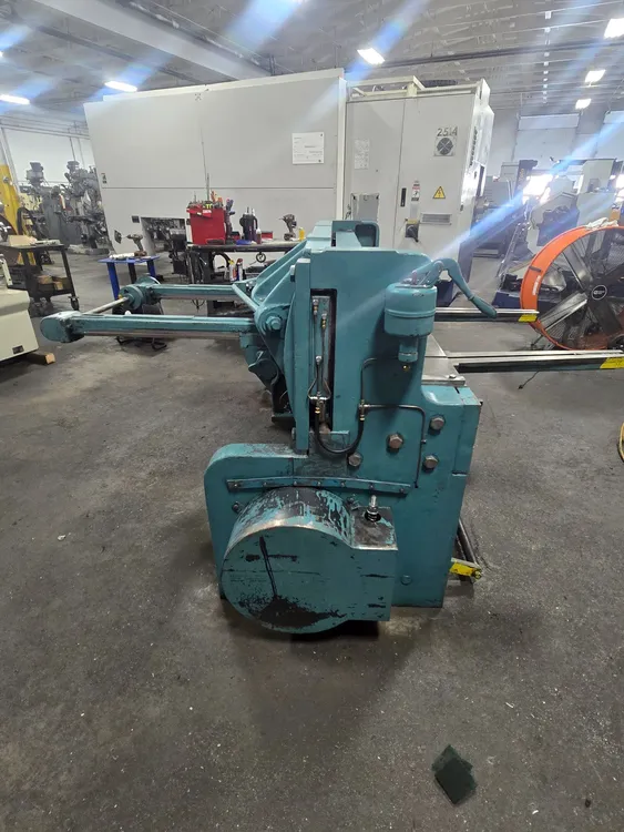 THE WYSONG MODEL 1048 IS A HYDRAULIC METAL SHEAR DESIGNED FOR FABRICATING OPERATIONS, FEATURING A ROBUST, HIGH-TENSILE FRAME AND BED CONSTRUCTION. IT OFFERS A MAXIMUM WIDTH OF CUT OF 48 INCHES AND A MAXIMUM LENGTH OF CUT OF 24 INCHES. THE SHEAR'S CAPACITY ALLOWS FOR CUTTING MAXIMUM THICKNESSES OF 0.188 INCHES FOR ALUMINUM AND 0.125 INCHES FOR STEEL. POWER IS SUPPLIED BY A 3 HP MOTOR, WHICH OPERATES AT 1730 RPM (3 PHASE, 60 HZ, 230V) AND ENABLES THE SHEAR TO RUN AT A SPEED OF 60 STROKES PER MINUTE. THE MACHINE IS EQUIPPED WITH A 24-INCH BACK FENCE FOR PRECISE CUTS. ITS STRUCTURAL DESIGN INCLUDES A T-SHAPED RAM WITH REINFORCING RIBS THAT OPERATES WITHIN A NON-METALLIC GIBBING SYSTEM, AND IT USES A FOUR-EDGE BLADE WITH 8-POINT ADJUSTMENT. OPERATIONAL FEATURES INCLUDE AN ADJUSTABLE HOLDDOWN, SAFETY GUARDS, A NINE-JAW CLUTCH, CAM-OPERATED BRAKE, A TOTALLY ENCLOSED TRANSMISSION, AND ELECTRO-PNEUMATIC CLUTCH CONTROL, MANAGED VIA A REMOTE FOOT SWITCH AND SUPPORTED BY AN AIR FILTER AND REGULATOR.