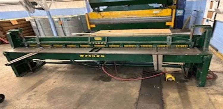 THE WYSONG A-120 IS A 10 FT POWER SQUARING SHEAR OPERATING ON PNEUMATIC POWER. IT HAS A MILD STEEL CAPACITY OF 18 GAUGE AND OFFERS A CUTTING LENGTH OF 120 INCHES (10 FT) WITH A BED WIDTH OF 17 INCHES. THE MACHINE REQUIRES 1.9 CUBIC FEET OF AIR PER CYCLE, DELIVERED VIA AN AIR CYLINDER SIZED AT 4.5 IN × 8.5 IN. CUTTING FEATURES INCLUDE PNEUMATIC SHEARING BLADE OPERATION, AN INDUSTRIAL SHEAR BLADE SET WITH A STANDARD INDUSTRY RAKE, AND 12 HOLD-DOWN CLAMPS. THE MACHINE WEIGHS 4,500 LBS AND HAS DIMENSIONS OF 130'' X 60'' X 48''IN.