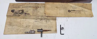 THE YUASA 550-001 RADIUS AND ANGLE DRESSER IS A PRECISION TOOL DESIGNED FOR USE WITH GRINDING WHEELS. IT FEATURES A CENTERLINE MEASUREMENT OF 3.400, ALLOWING FOR ACCURATE AND PRECISE ADJUSTMENTS IN GRINDING APPLICATIONS. THIS MODEL IS HOUSED IN ITS ORIGINAL WOOD CASE, ENSURING PROTECTION AND EASE OF TRANSPORT. THE DRESSER IS ENGINEERED TO FACILITATE THE PRECISE DRESSING OF GRINDING WHEELS, MAKING IT AN ESSENTIAL ACCESSORY FOR ACHIEVING EXACT ANGLES AND RADII IN MACHINING TASKS.