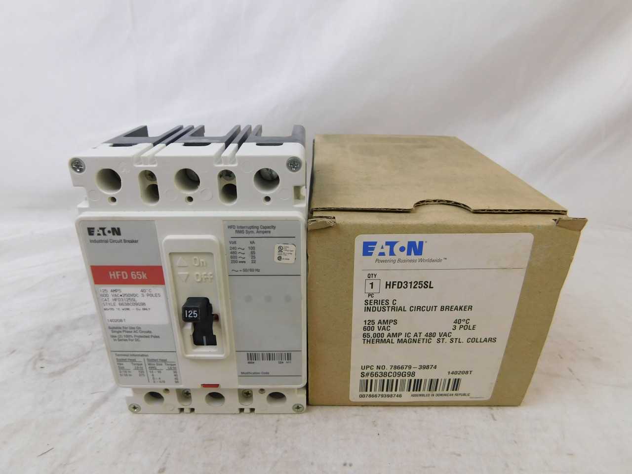 Quantity 4 of New Surplus Eaton HFD3125SL MCCB 3P 125A 600V